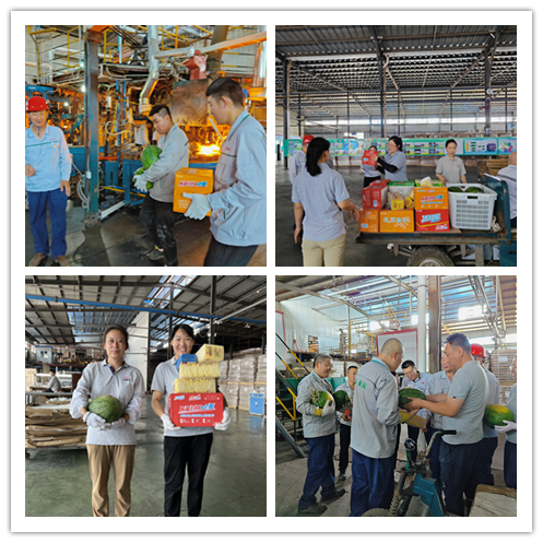 由于曜暉所處行業(yè)比較特殊,從原料粉末、熔化、玻璃液到成品,整個生產(chǎn)流程都需在高溫環(huán)境下實現(xiàn)。合影結(jié)束后,黨員代表深入車間現(xiàn)場開展迎“七一”送清涼活動,將濃濃關懷送到職工心坎上,代表們來到車間,把清涼的大西瓜、飲料、菊花茶等防暑降溫物品送到員工手中,為他們帶去絲絲涼意。雖然工作環(huán)境高溫悶熱,但工人們認真積極工作的態(tài)度始終如一,令人敬佩。